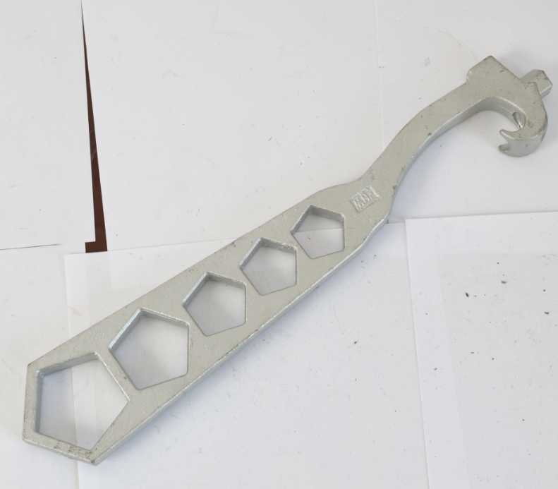 Heavy Ajuste de servicio. Llave para Hidrantes: Cabeza de hierro fundido, mango de acero. Para tuercas pentágonos hasta llave de 1 3/4". Para pasadores y orejetas de balancín de 1 1/2" ~6".